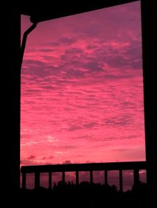 Y pienso que ese combinado entre bailar, ser abrazada y abrazar, hacer de taxista y tener memorias en palabras es un buen resumen de mi vida. Y una maravillosa forma de empezar el año. Y la vida me sigue cuidando en forma de mensajes amados y amaneceres que vienen a mi ventana. Mañana tendré otra belleza esperándome porque aún me quedan un par de días de diez horas para acabar. Pero mañana haré un pequeño descanso para un abrazo río frente al mar antes de volver a releer lo que he escrito y corregir y corregir y corregir.